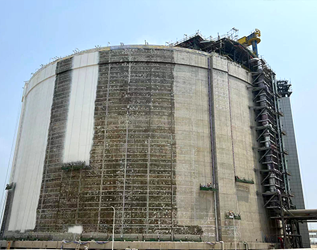 北燃天津南港LNG應(yīng)急儲備項目的薄膜型LNG儲罐是目前全球最大的陸上LNG薄膜罐,是為北京市提供安保用氣、加速京津冀一體化的重點(diǎn)項目,我司承攬此項目二、三階段共計六臺薄膜罐的防潮層施工工作